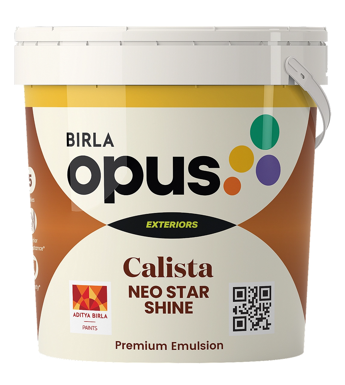 Elevate your exterior with Birla Opus Neo Star Shine, a premium paint designed to make a lasting impression. Its durable shine, supported by a 7-year warranty, offers superior resistance to dust and algae, ensuring a vibrant, low-maintenance finish. Its robust film prevents cracking and peeling, while solar reflectance aids in temperature regulation indoors. Add that to its anti-carbonation properties, which provide added protection against environmental damage, ensuring your home retains its beauty for years to come.