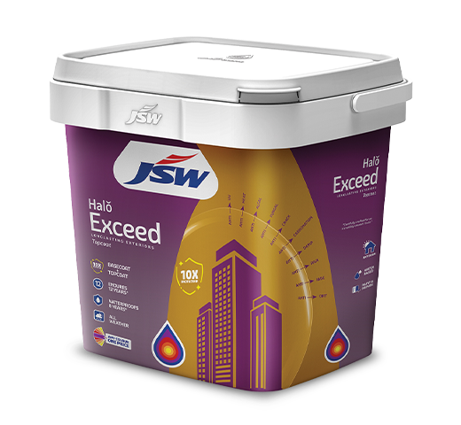 Formulated with 100% acrylic emulsion, JSW Paints Halo Long Lasting Exteriors offers 10X protection.