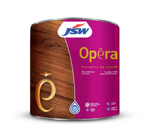 OPERA MAJESTIC PU FINISH is an ultra-luxury, two-component, clear wood finish that can be used on all kinds of prepared, seasoned wood and veneer surfaces. It offers a mirror like finish with best-in-class scratch and stain resistance.