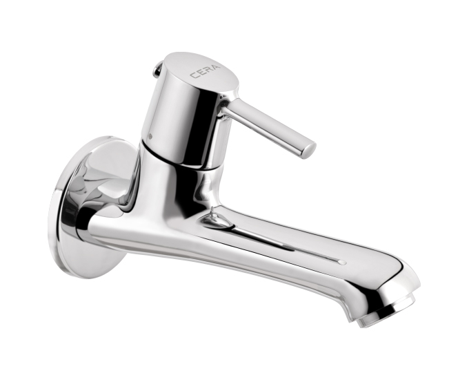Bib cock long nose with wall flange and aerator