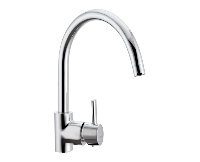 Single lever sink mixer (table mounted) with 235 mm (9″) long swivel spout and 450 mm long braided connection pipe